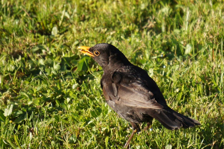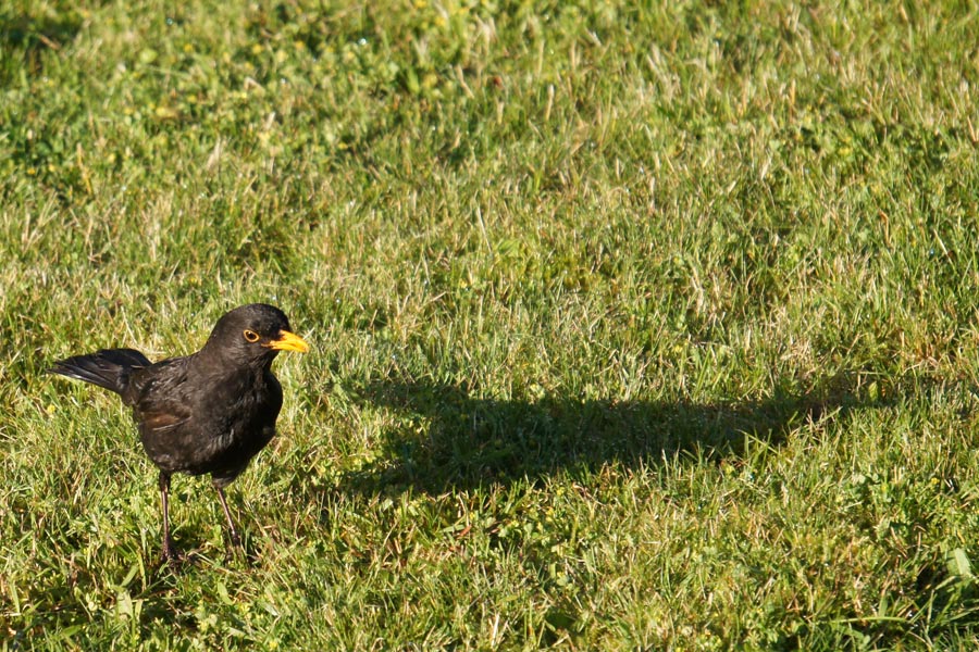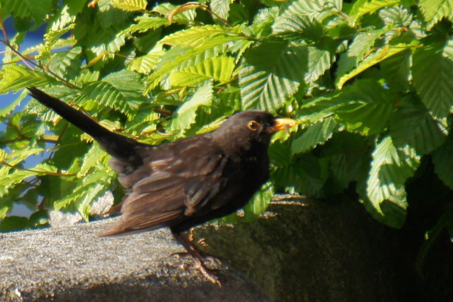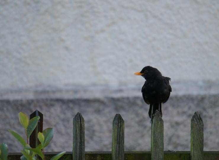 Der Amselvater besucht mich jeden Morgen am Küchenfenster und sagt *Hallo*, so scheint es zumindest, denn er schaut bewusst in die Küche, wiegt seinen Kopf hin und her und lässt sich durch uns nicht beunruhigen. Kamerascheu ist er ebenfalls nicht. Dafür etwas zerzaust, wer weiss was er schon für Kämpfe kämpfen musste.
