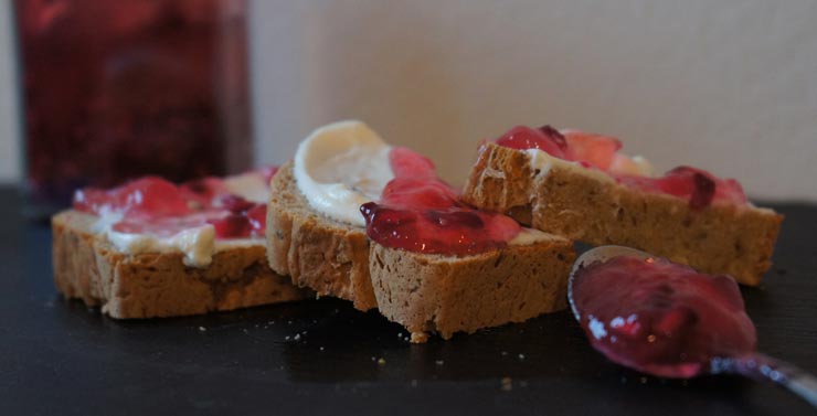 Für unser glutenfreies Kastenbrot verwenden wir die Mengenangaben vom glutenfreien Nussbrot der Betty Bossi. Anders als noch im April verwende ich hier aber keine Hefe mehr sondern glutenfreies Backpulver. Versucht es, die fehlende Hefe wird euch dank Teff, als wunderbarer Brotgeschmacksgeber (dieses Wort gibt es nicht wirklich… aber ihr wisst schon was ich damit meine ^^ ) nicht auffallen. Das Brot backen wir einer Kastenform und lagern es anschliessend im Kühlschrank. Kurz vor dem Essen in Scheiben schneiden und ab in den Toaster.