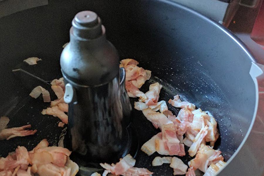 Da der Salat während der Herstellung lange Zeit in der Bratpfanne verbringt und oft gerührt werden muss, habe ich die Gelegenheit genutzt und versucht ihn in der Actifry Smart XL zuzubereiten.
