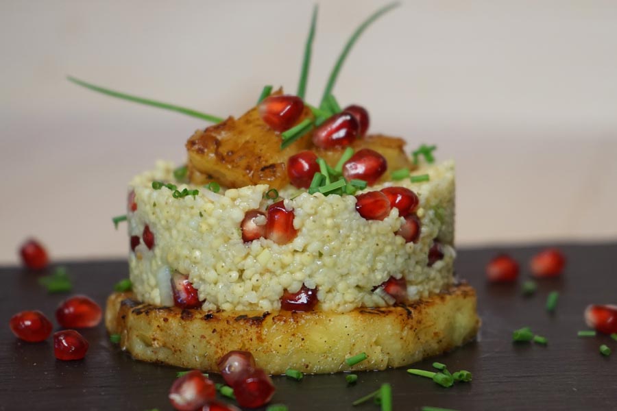 Farbenfroher Hirsesalat mit Granatapfel und Ananas