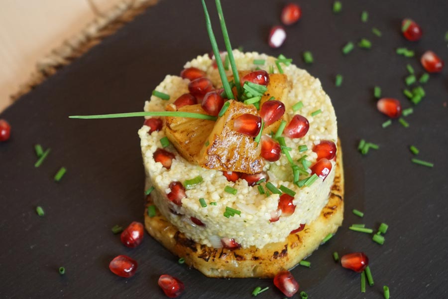 veganer Hirsesalat mit Ananas für 1 Person oder 2 Vorspeisen