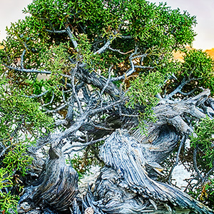 Der Wacholder (auf englisch "Juniper") scheint eine besonders 'zähe' Pflanze zu sein. Als Baum oder Strauch haben wir diese auf unserer USA-Reise fast überall, in den unterschiedlichsten Arten, angetroffen und war es noch so trocken, felsig und heiss. Einige besonders schöne Exemplare konnte ich im Joshua Tree Nationalpark fotografieren, wo sich die Pflanze aus schmalen Felsritzen heraus zwängte.
