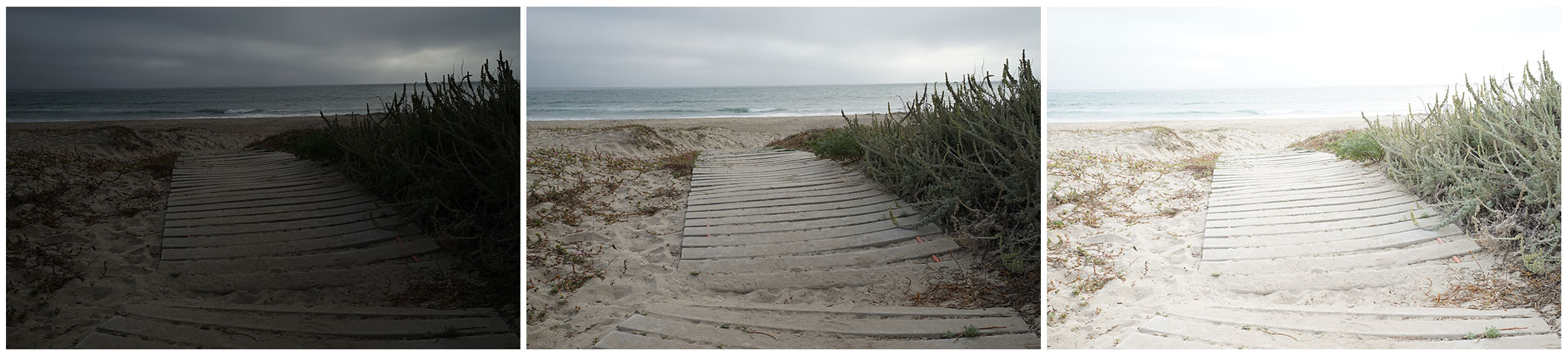 Brennweite: 35mm; Blende 10; ISO 125, Belichtungsreihe: 0.002 (1/500), 0.008 (1/125), 0.0333 (1/30).