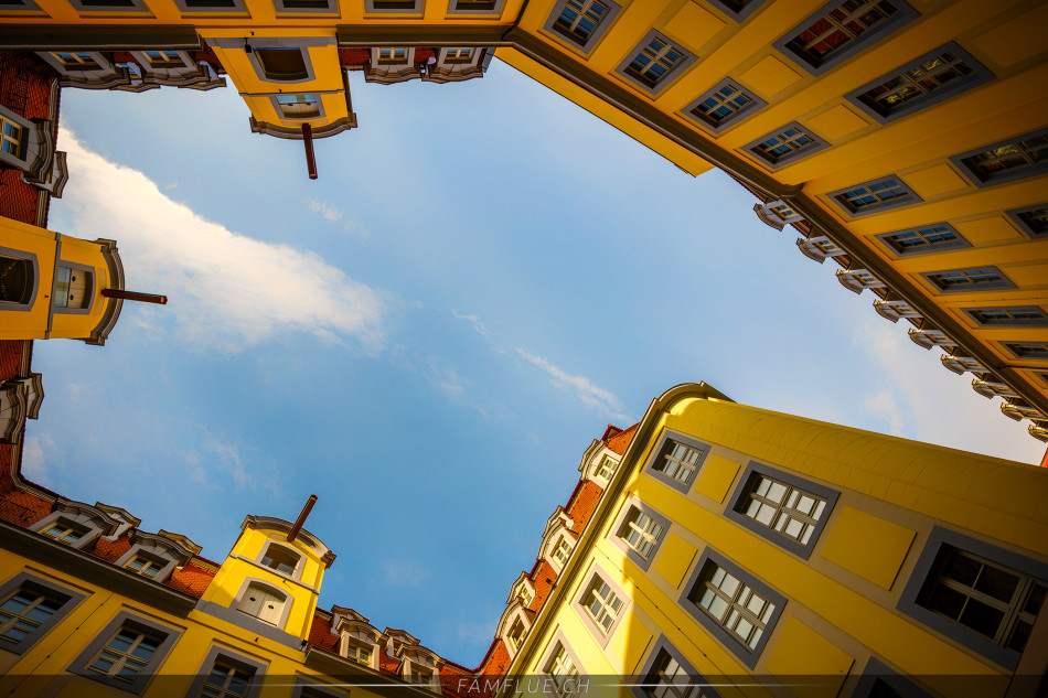 Unterwegs in der Altstadt von Leipzig, mit meiner Lieblingsbrennweite von 16mm, ist dieses Foto entstanden. Wunderschöne alte Bauwerke und blauer Himmel was kann man sich mehr wünschen für einen fotospaziergang?