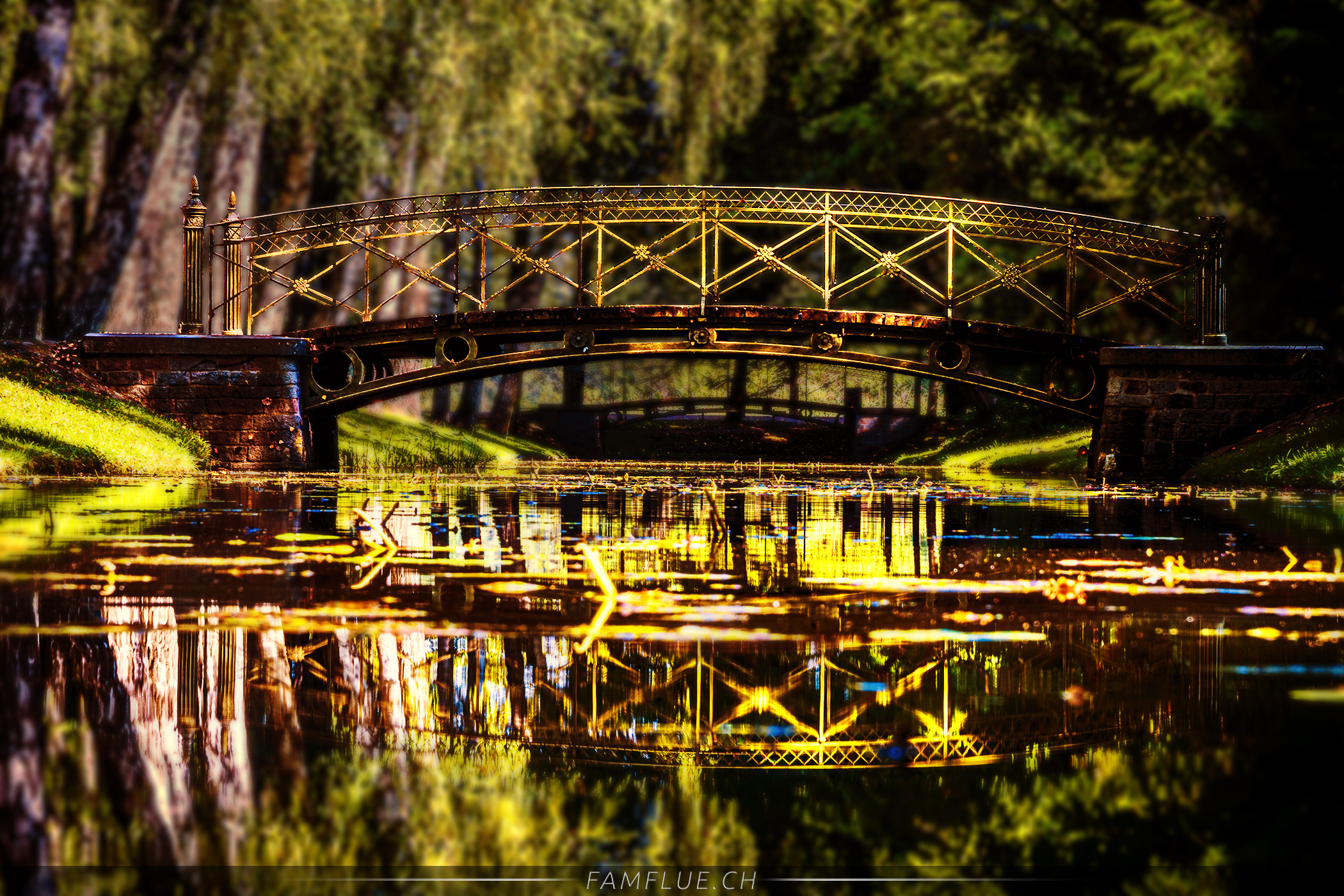 Die Brücken im Schlossgarten beim Schloss Schwerin. Fotografiert mit dem Zoom-Objektiv auf unserem Europa-Trip im Herbst 2021.