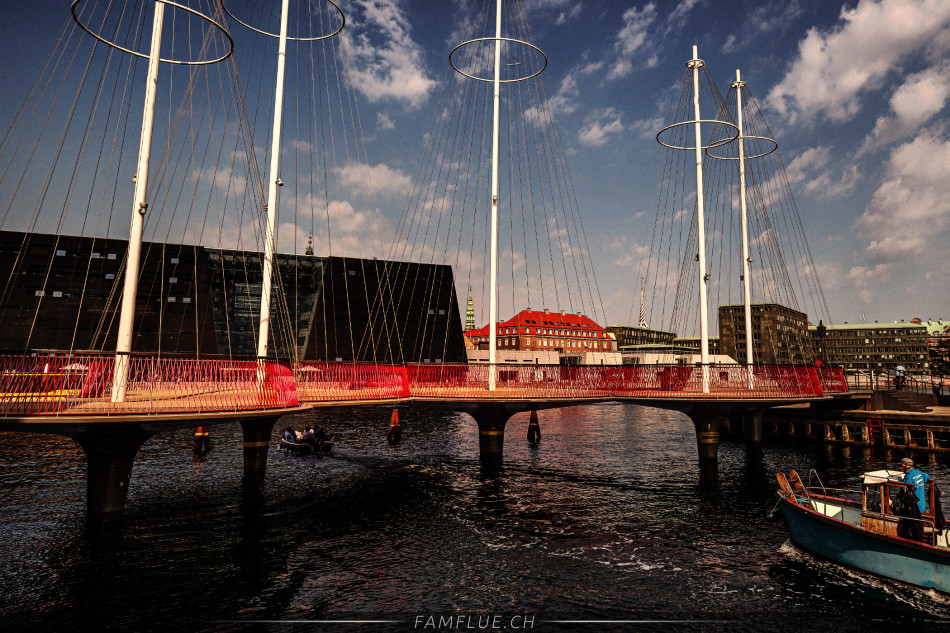 Zu Fuss unterwegs in Kopenhagen sind wir dann unter anderem auch bei der Brücke mit den fünf Kreisen vorbeigekommen.