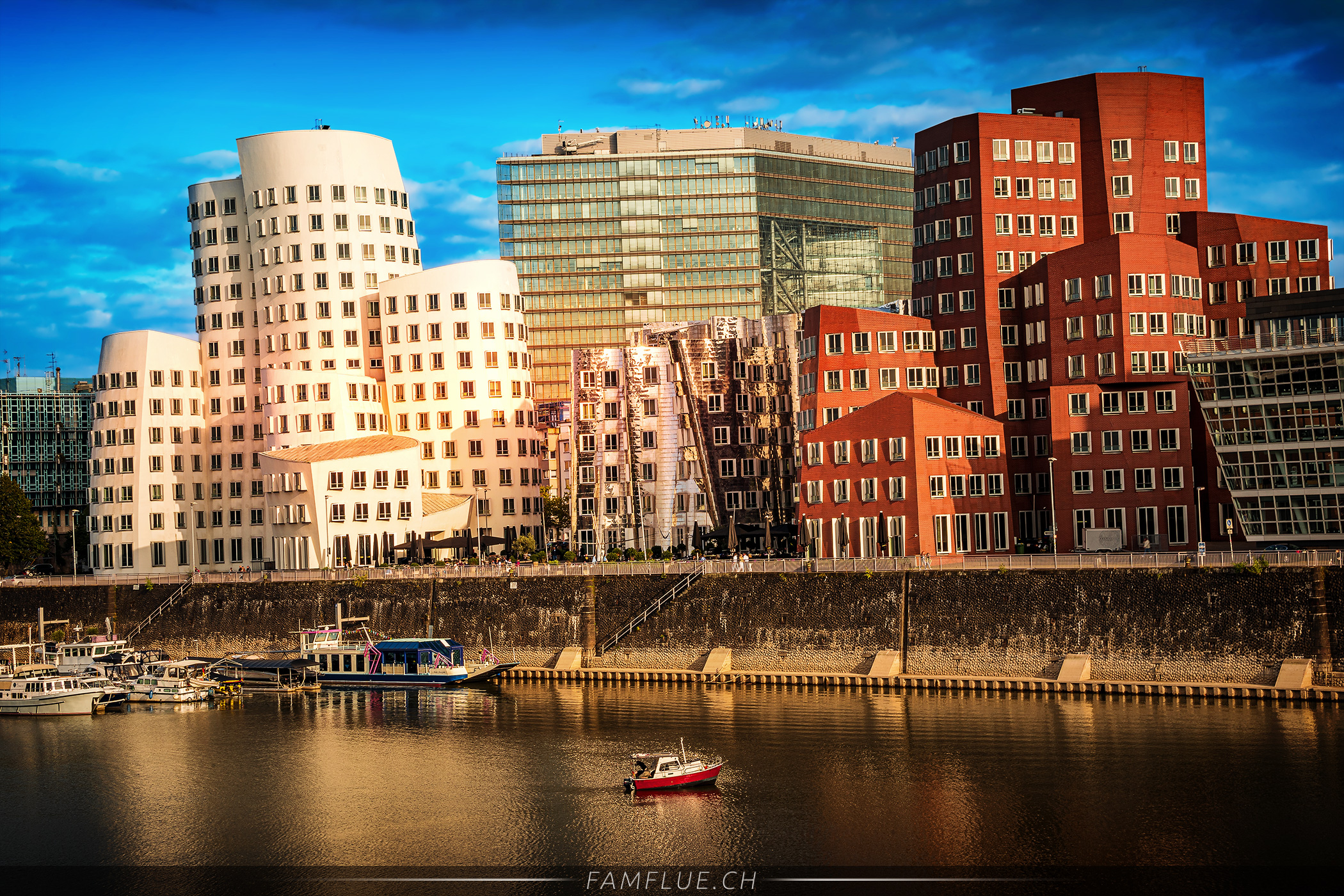 Zu Besuch in Düsseldorf haben wir am Abend vom 19.9.2021 einen längeren Spaziergang im neuen Medienhafen unternommen.