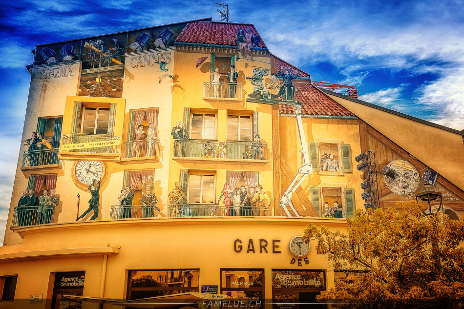 Die bemalten Wände beim Cinéma Cannes. Fotografiert im Oktober 2021.