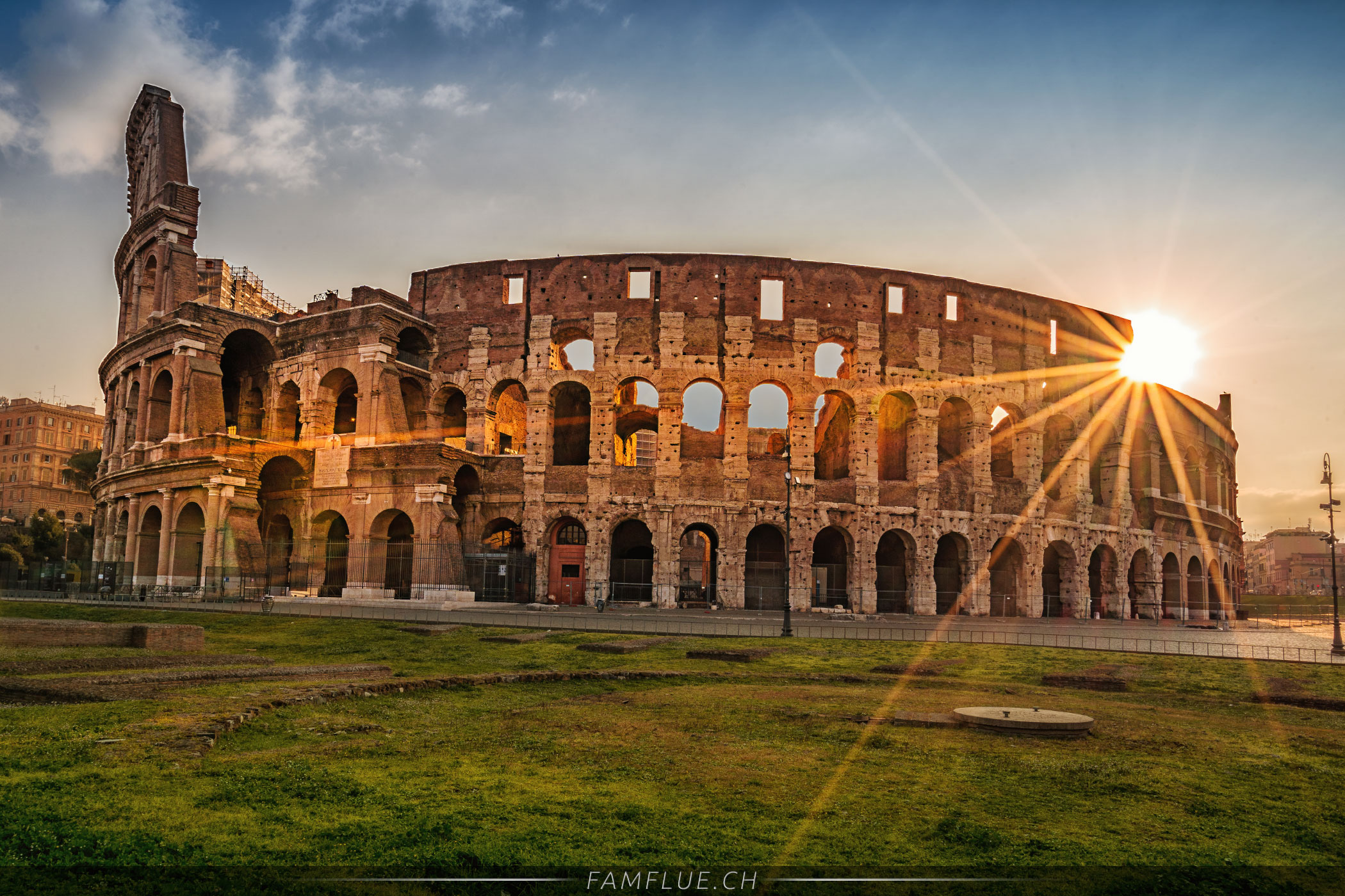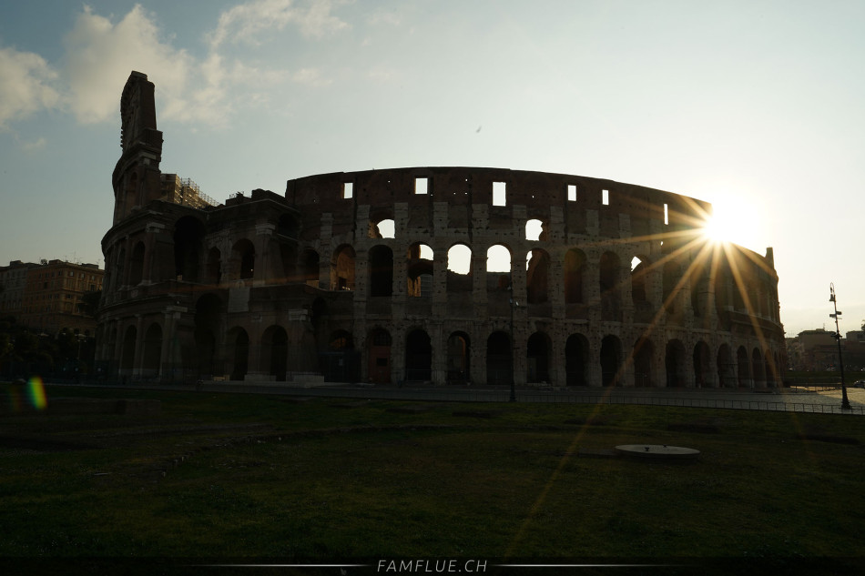 Um 07:50 stand die Sonne schon bereits etwas höher und streifte nur noch knapp den oberen Rand vom Kolosseum.