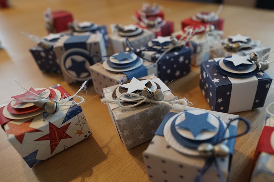 20 Schmuckkistchen im weihnachtlichen Kleid. Dieser Auftrag hat mir sehr viel Freude bereitet.