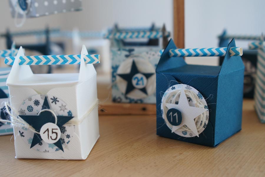 Advent ohne Adventskalender geht gar nicht. So bekommen auch meine inzwischen erwachsenen Patenkinder immer noch 24 kleine Überraschungen. Die jüngeren Gottikinder natürlich auch J So verliebt wie ich in die Strohhalmboxen bin, habe ich sie in einen Adventkalender umfunktioniert.